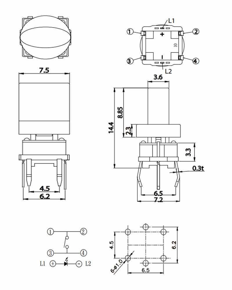 帶燈輕觸開關TS系列,結構簡單、功能簡單,低電壓低電流,在消費類電子產品上很常見的開關。有插件DIP,貼片SMD;LED燈有單色、雙色和RGB全色;不僅有多種蓋子可以搭配,更能呈現多元的外觀效果。