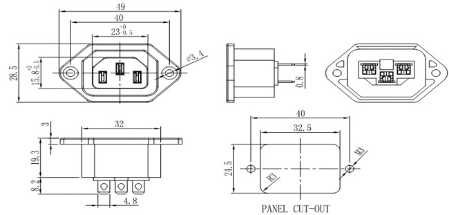 AC電源插座系列,單插、二合一、三合一保險插座等多種規格,大電流10A ,15A,產品通過UL VDE CCC CB等認證,常見于家用電器,音響功放機等