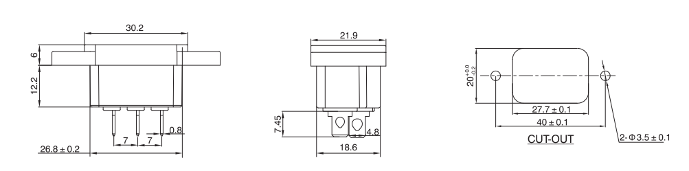 治具插座S-03系列,單插、二合一、三合一保險插座等多種規(guī)格,大電流10A ,15A,產(chǎn)品通過UL VDE CCC CB等認證,常見于家用電器,音響功放機等