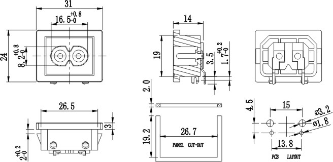 IEC插座系列,小型八字插座,米老鼠插座 ,梅花座等多種規格,產品通過UL VDE CCC CB等認證,常見于家用儀器設備,小家電等